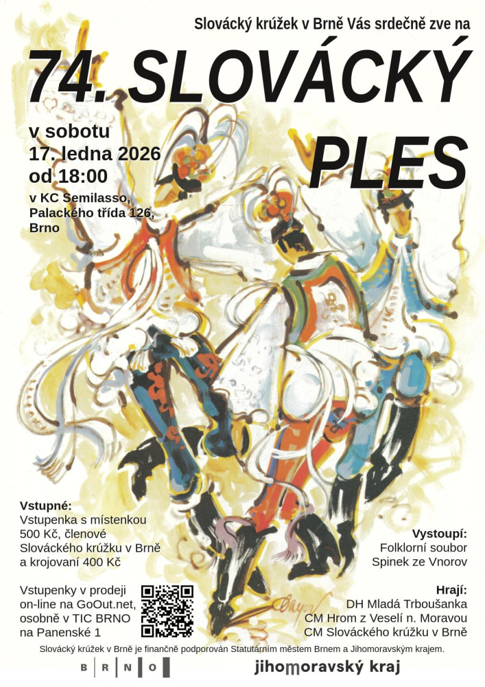 Předprodej vstupenek probíhá on-line na platformě GoOut: https://goout.net/cs/slovacky-ples-2026/szsyjdy/