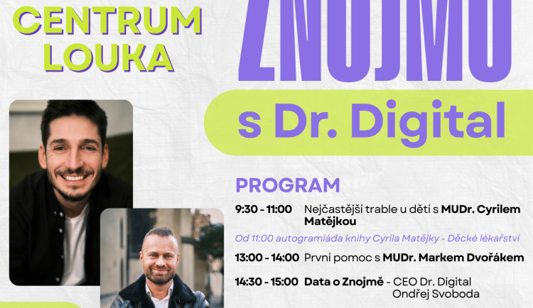 „Zdraví je téma, které se dotýká každého z nás bez ohledu na věk. Proto chceme v rámci Dne zdraví s Dr. Digital nabídnout pestrý program, od praktických rad pro rodiče malých dětí až po pohled na moderní technologie a práci s daty ve zdravotnictví. Jsem rád, že se nám daří do Znojma přivádět kvalitní odborníky a otevírat témata, která jsou aktuální a mají přímý dopad na kvalitu života obyvatel,“ doplnil místostarosta Jakub Malačka.