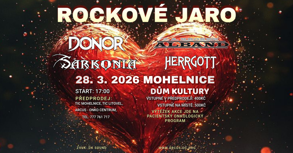 Spolek ARCUS – onko centrum, z.s. srdečně zve na benefiční akci Rockové jaro Mohelnice, které se koná v sobotu 28. března 2026. Přijďte si užít skvělou hudbu a podpořit dobrou věc!