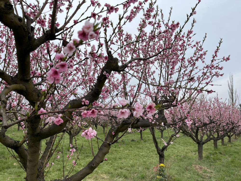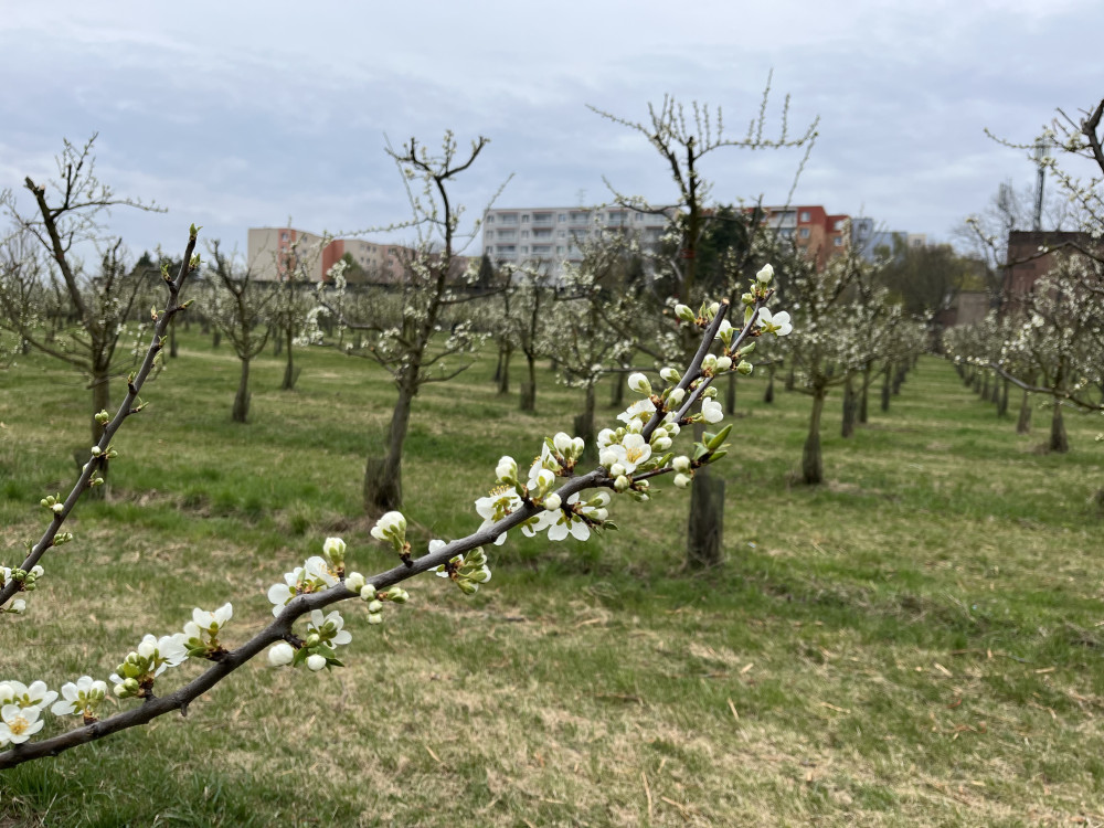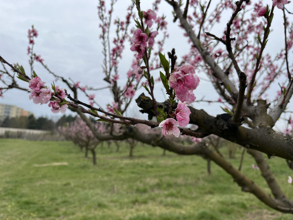 FOTO: Procházka ovocným sadem. Broskvoně v Bohunicích jsou v plném květu