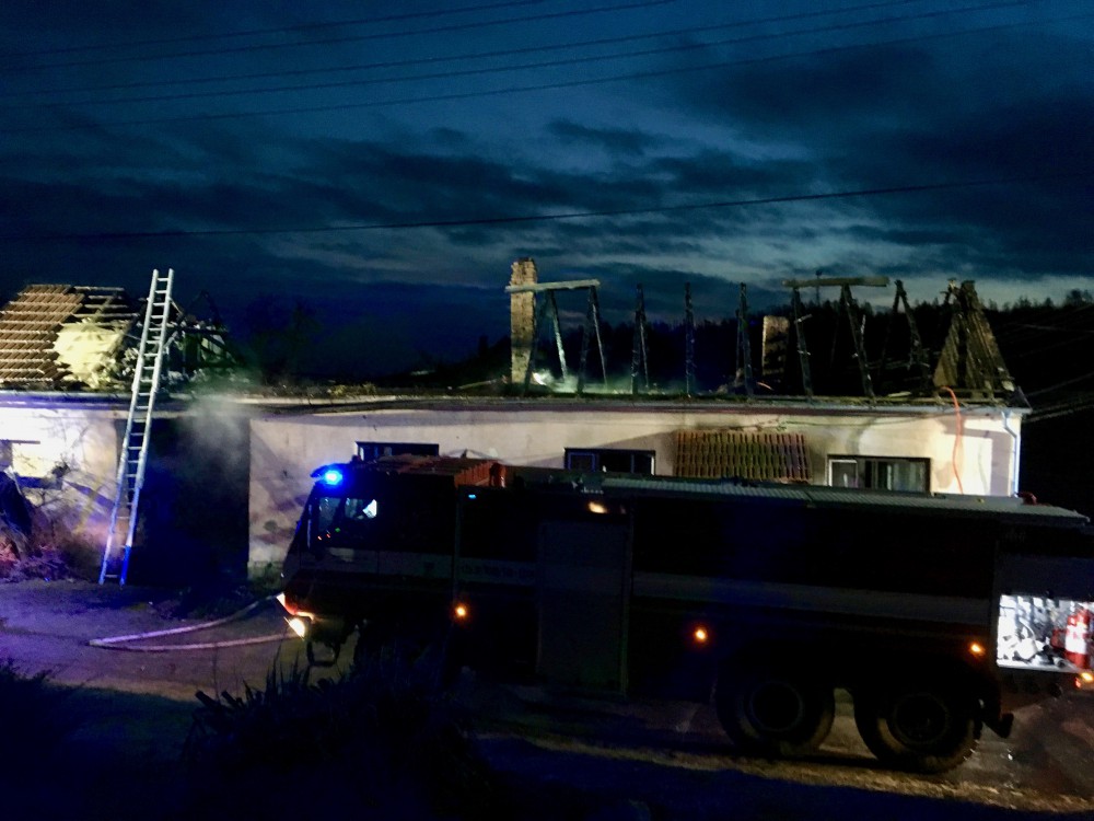 Na Znojemsku v noci hořel rodinný dům, tři lidi odvezla záchranka