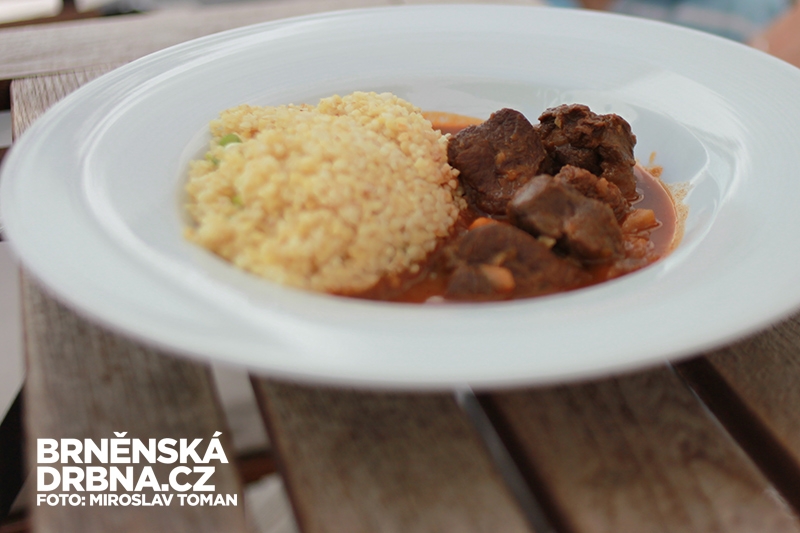 Pštrosí menu v kavárně Era. Zde ragú z marinovaného pštrosího masa s bulgurem, foto: Brněnská Drbna, Miroslav Toman