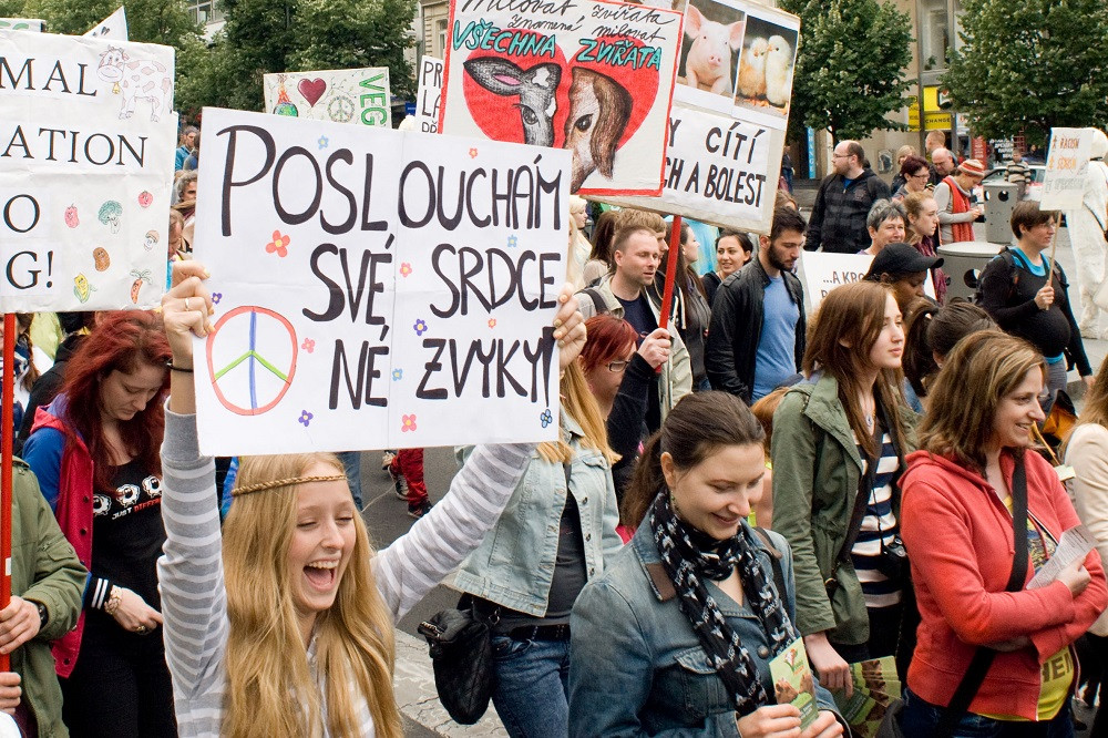 Před bučovickými jatkami dopoledne protestovali aktivisté. Poukazují na utrpení zvířat při převozu