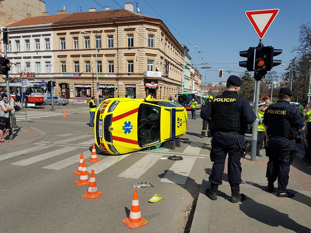 VIDEO: V Brně se u Lužánek srazil osobák se záchrannou službou, tři lidé se zranili