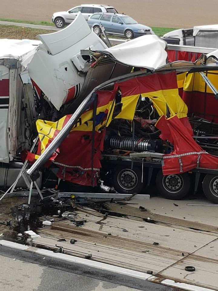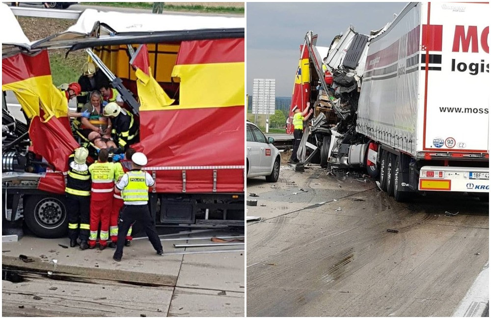 Nehoda tří kamionů uzavřela dálnici D1 na Prahu od 120. kilometru, hasiči musel vyprošťovat řidiče