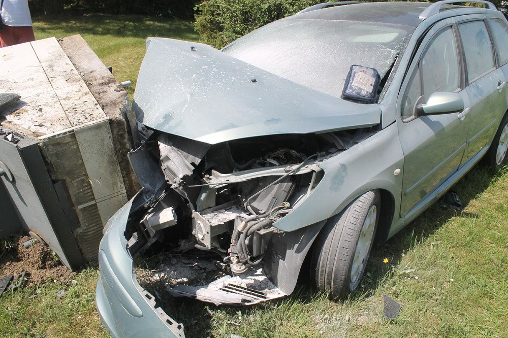 Řidička vyjela ze silnice a trefila betonový sloup, motor začal hořet