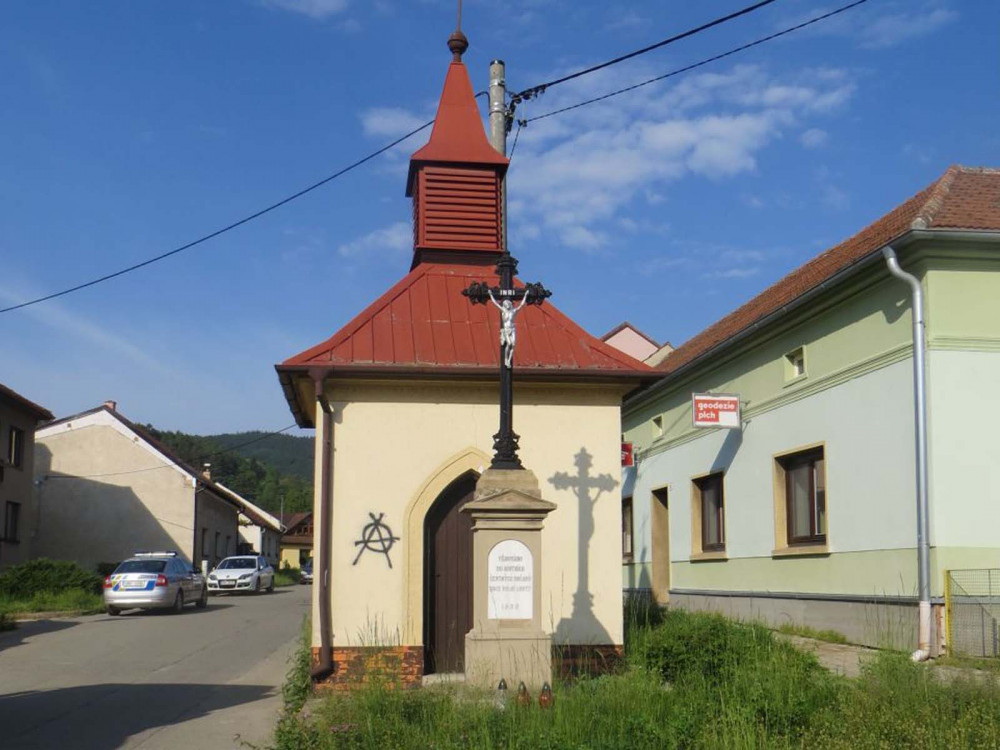 FOTO: Vandal nasprejoval na kapličku punkové anarchistické áčko