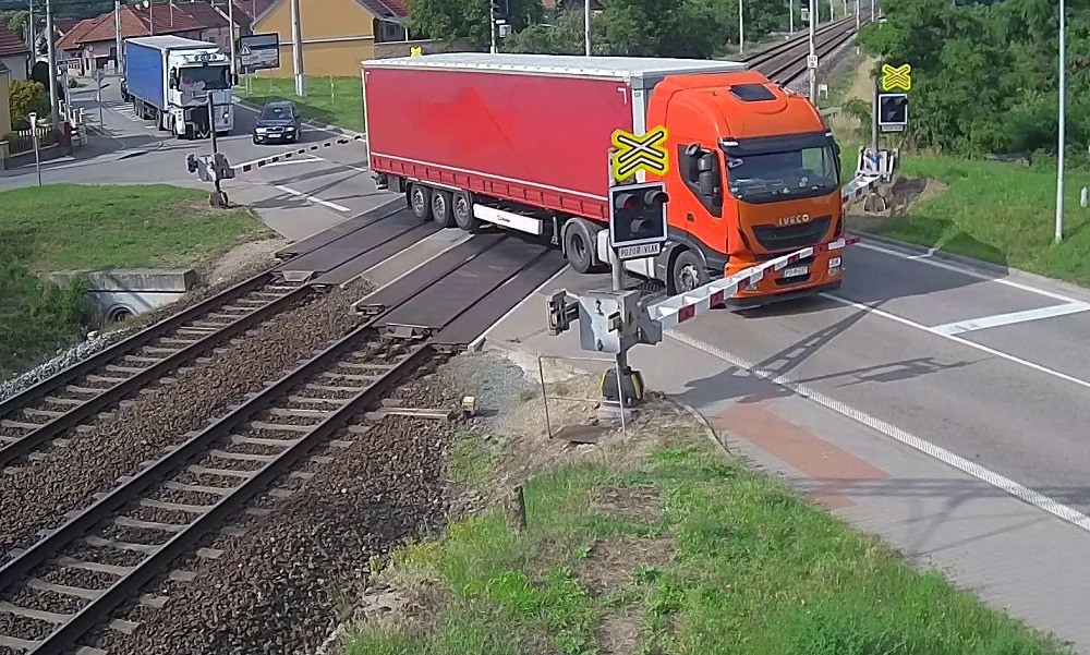 VIDEO: Řidič kamionu ignoroval červenou na přejezdu, kvůli vlaku pak prorazil závory