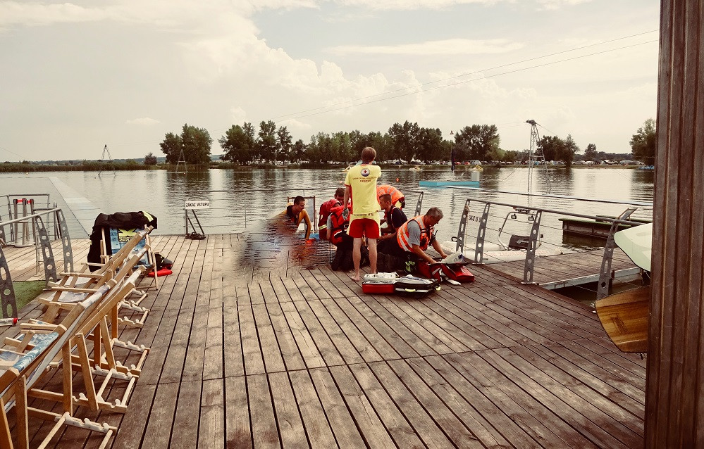 V Pasohlávkách si na wakeboardu mladý muž ošklivě zlomil nohu. Záchranáři ho vytahovali z vody