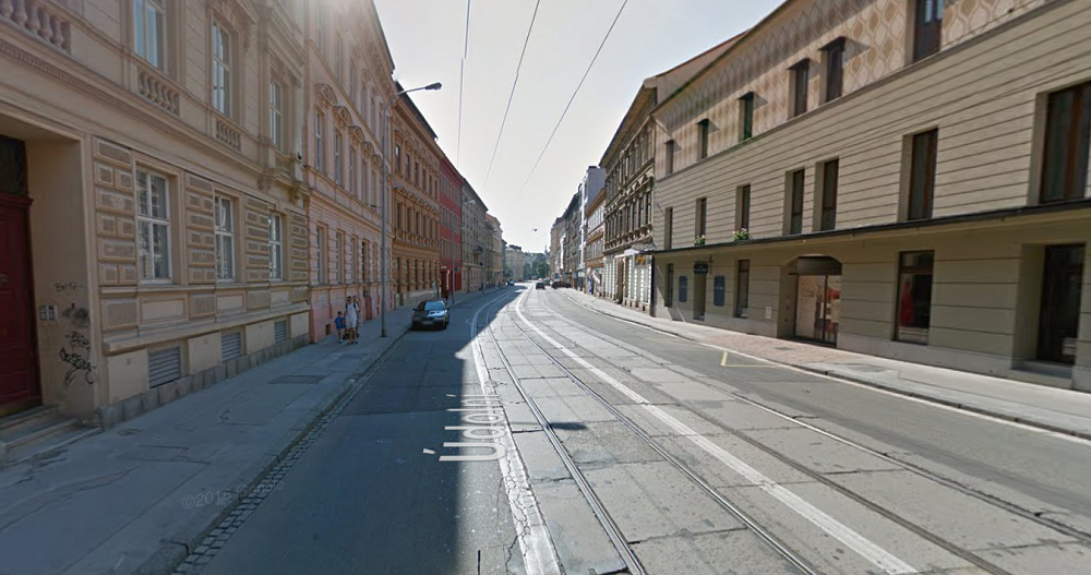 Údolní ulice od křižovatky s ulicí Úvoz, zdroj: Google Maps