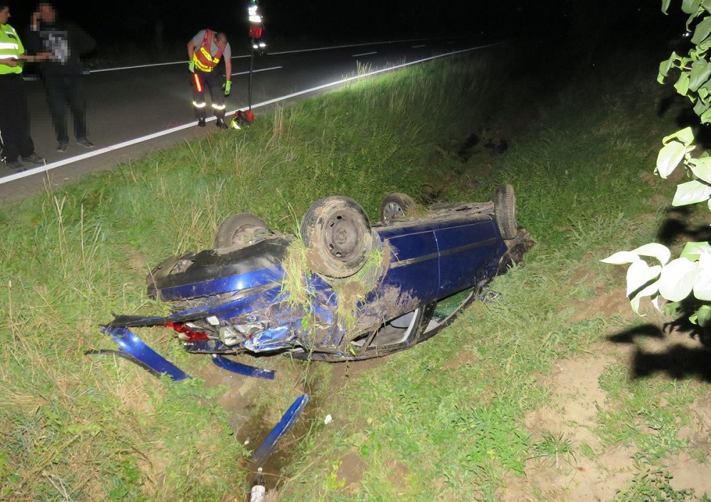FOTO: Osmnáctiletý řidič nezvládl řízení a poslal auto do příkopu