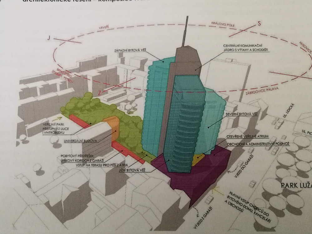 Ve vnitrobloku na Lidické má vyrůst mrakodrap se 180 byty. Zelení ho chtějí zakázat