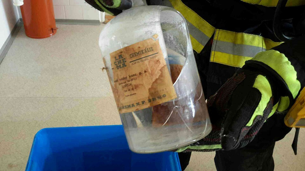 V Modřické základní škole spadla na zem láhev se čpavkem. Hasiči evakuovali 75 lidí