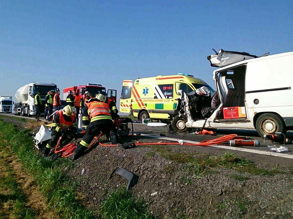 FOTO: Hrozivě vypadající nehoda uzavřela silnici na Znojmo. Hasiči vystříhávali ženu z auta