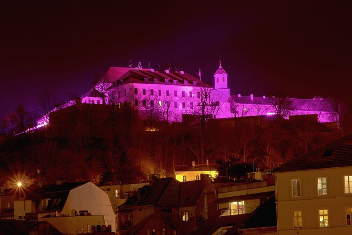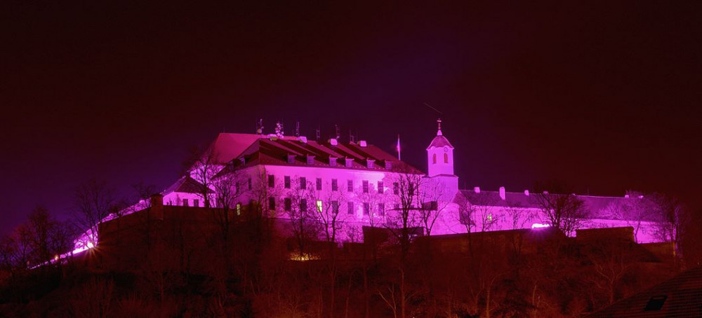 FOTO: Špilberk se zbarvil do purpurové na podporu Světového dne předčasně narozených dětí