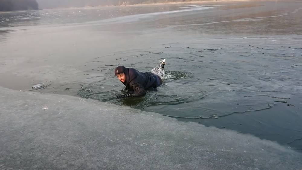 VIDEO: Bruslař se propadl ledem na Prýglu, ven se dostal sám. Strážníci před vstupem na led varují