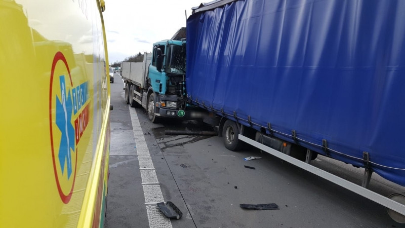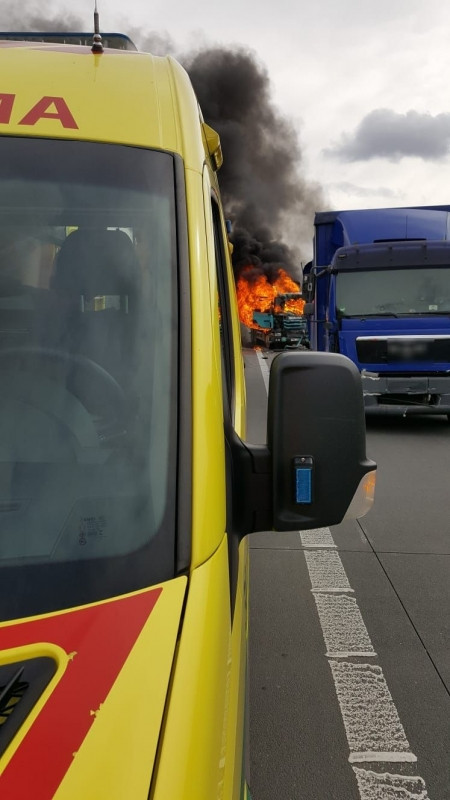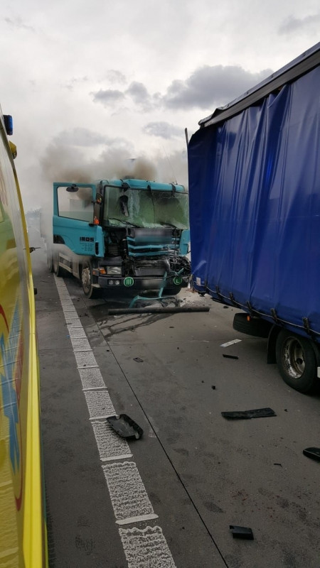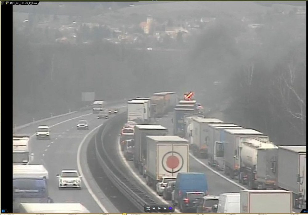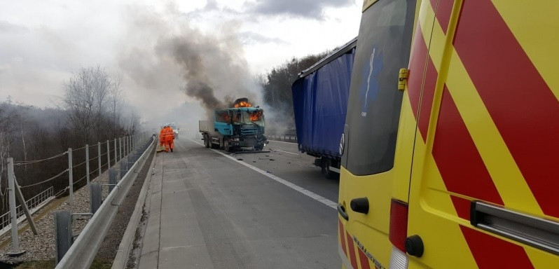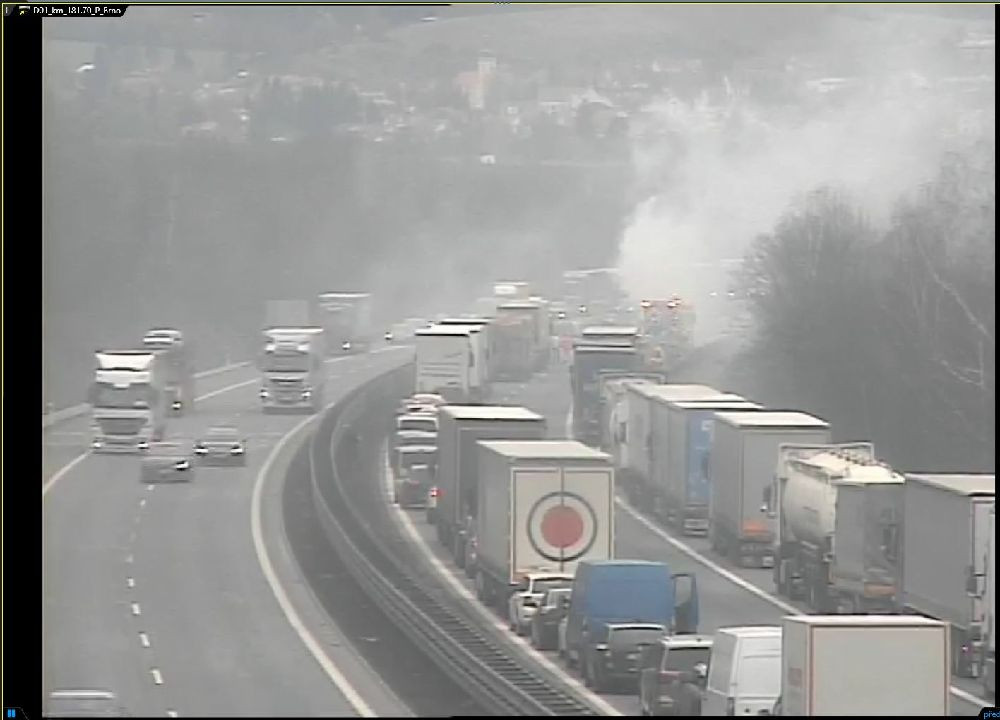FOTO: Na D1 dnes začal hořet kamion, tvořily se kilometrové kolony