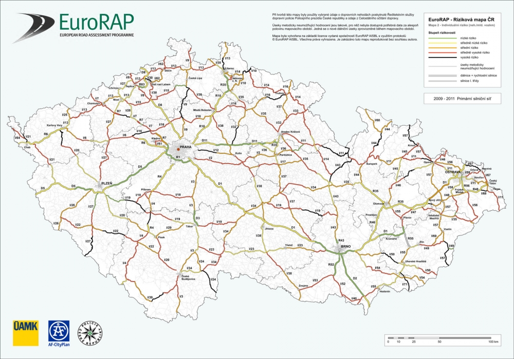 Mapa výzkumu EuroRAP prozrazuje nebezpečné silnice v ČR, foto: EuroRAP