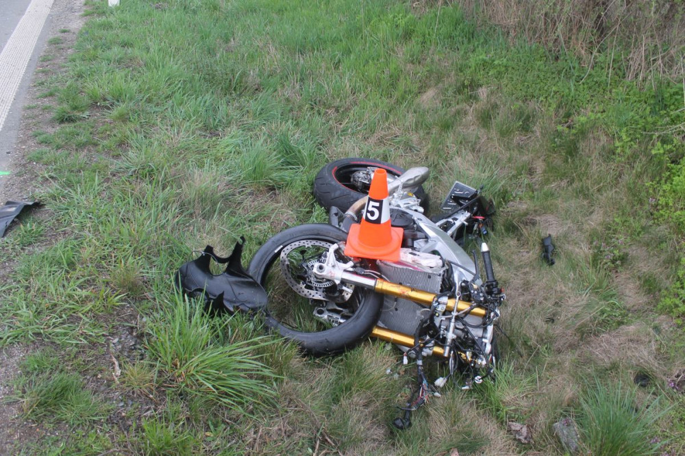 FOTO: Motorkář zemřel po srážce s Fabií. Náraz byl tak silný, že odhodil auto ze silnice
