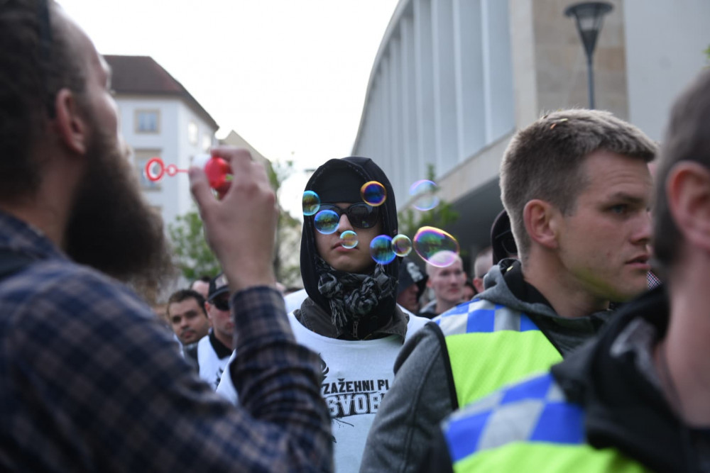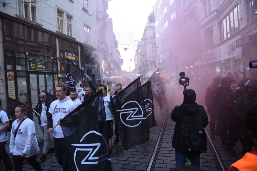 FOTO/VIDEO: Zapálené pochodně a bitka mezi demonstranty. Brnem prošel zástup příznivců krajní pravice