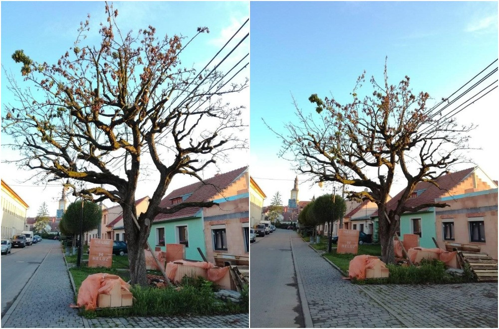 Do staré hrušně někdo úmyslně navrtal díry a nalil neznámou látku, strom uschl
