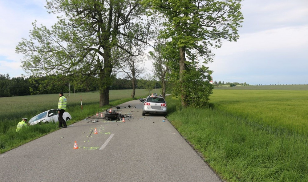 Motorkář předjížděl v otáčce autobus a čelně se srazil s Octavií, na místě zemřel. Policisté hledají svědky