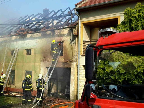 Ve Švábenicích chytla střecha rodinného domu. Zasahovat přijelo sedm jednotek hasičů
