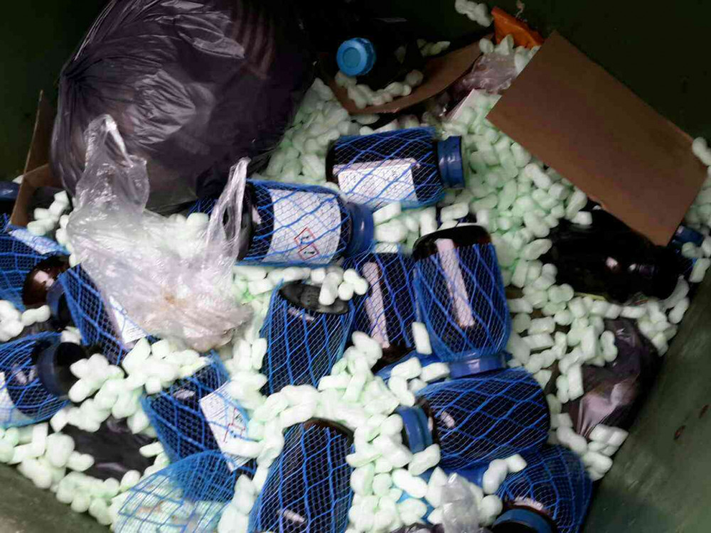 Do kontejneru ve Vyškově někdo vyhodil desítky lahví s chemikáliemi, šlo o jód a kyselinu chlorovodíkovou
