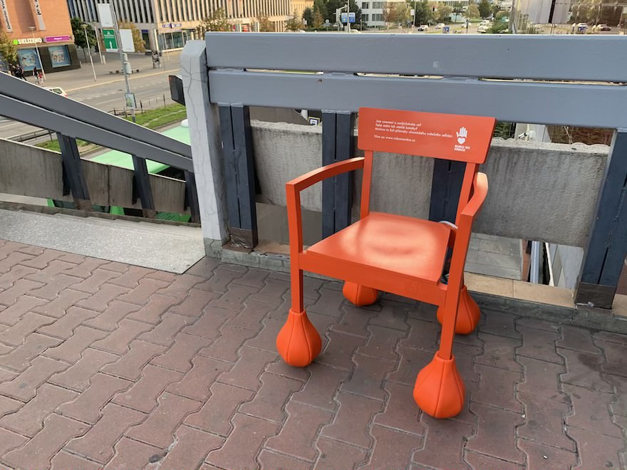 Oranžové židle s boulemi zaplavily centrum Brna.