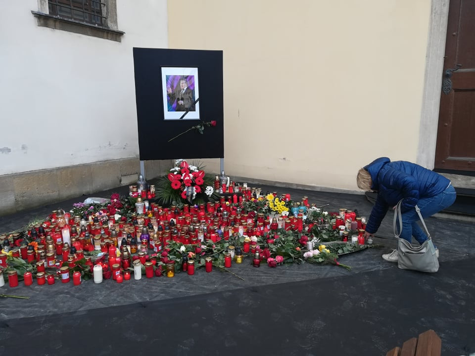 Lidé nosí na Dominikánské náměstí v Brně svíčky ve vzpomínce na Karla Gotta