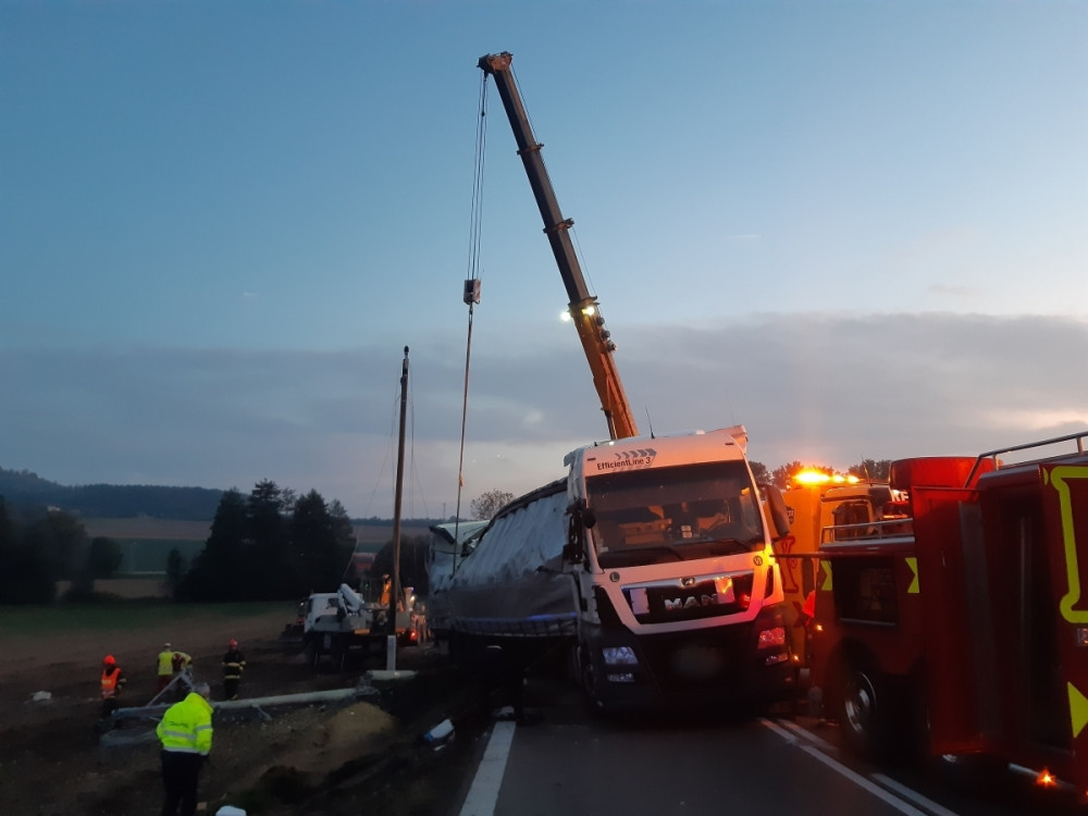 Nehoda kamionu v sobotu způsobila odstávku elektřiny, dopravní situaci komplikovala 6 hodin