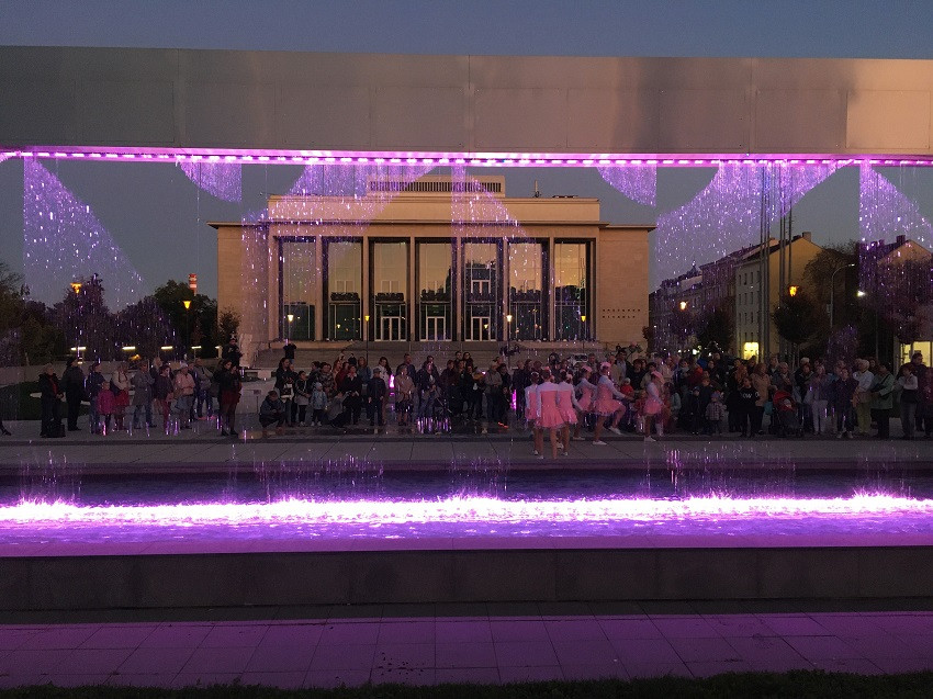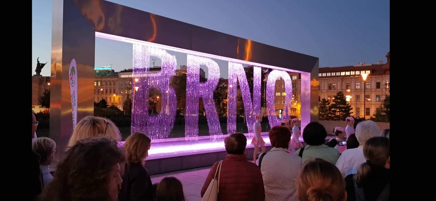 FOTO: Fontána před Janáčkovým divadlem se včera rozsvítila na růžovo