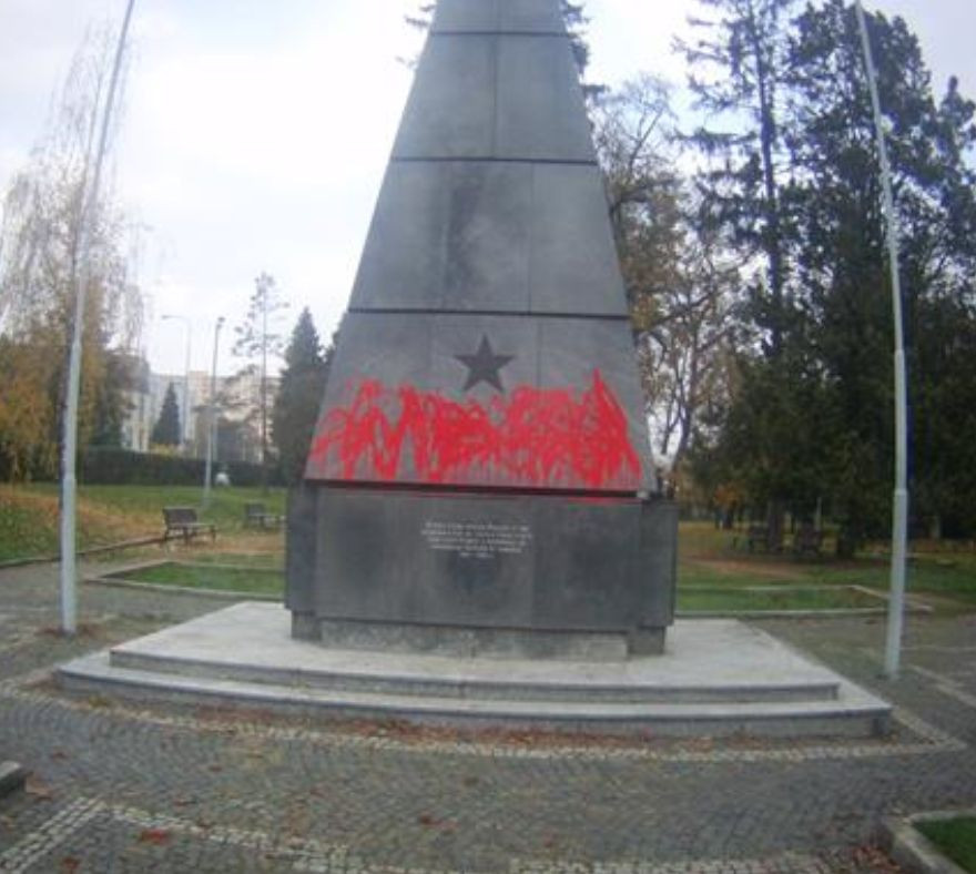 Neznámý vandal postříkal v Brně pomník rudoarmějců červenou barvou