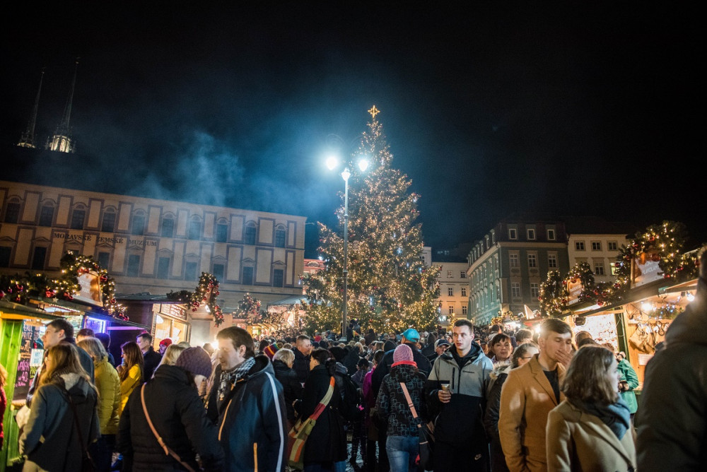 FOTO/VIDEO: Svoboďák dnes prozářil vánoční strom. Rozsvícení stromu zahájilo vánoční trhy i ve středobodu města