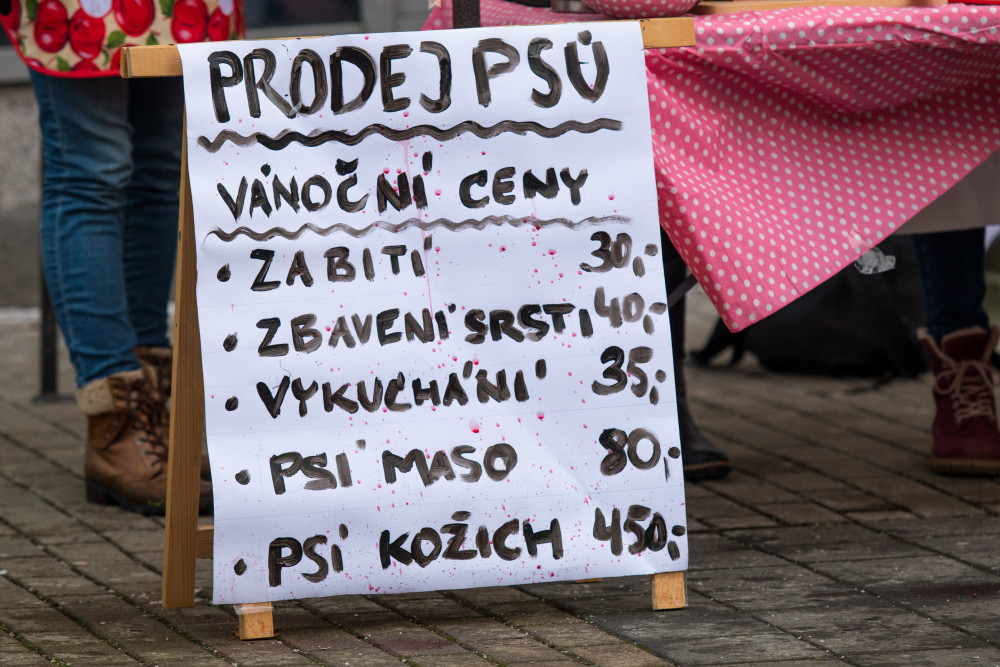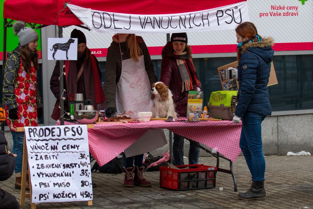 Místo kapra na talíři pes. Aktivisté budou v Brně prodávat vánoční pejsky na maso