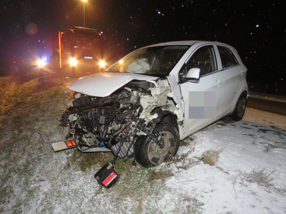 Sníh a ledovka potrápila o víkendu přes dvacet řidičů. Dnes ráno pro mladého řidiče letěl i vrtulník