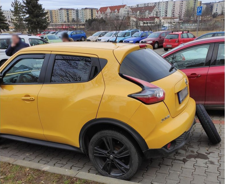 FOTO: Neznámý vandal rozřezal v Líšni třiceti autům pneumatiky