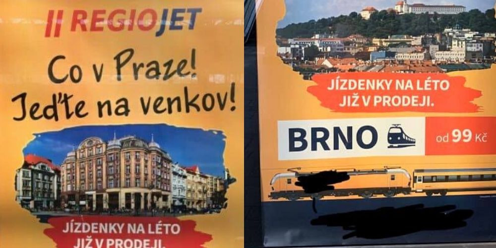 Co v Praze! Jeďte na venkov! Dopravce nabízí jízdenky do Brna kontroverzní kampaní