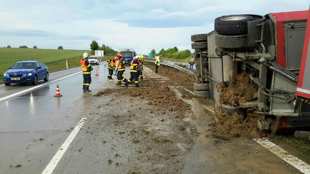 FOTO: Na dálnici havaroval kamion převážející prasata, několik jich uhynulo