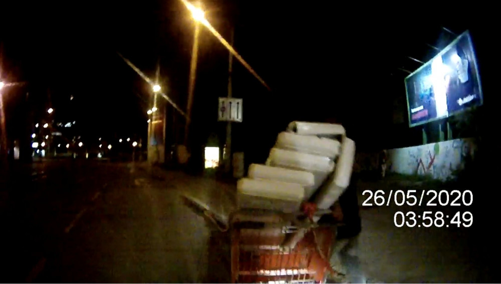 Muž tlačil na Starém Brně z posledních sil vozík s nakradeným kovem, na kamerách ho přitom pozorovali strážníci