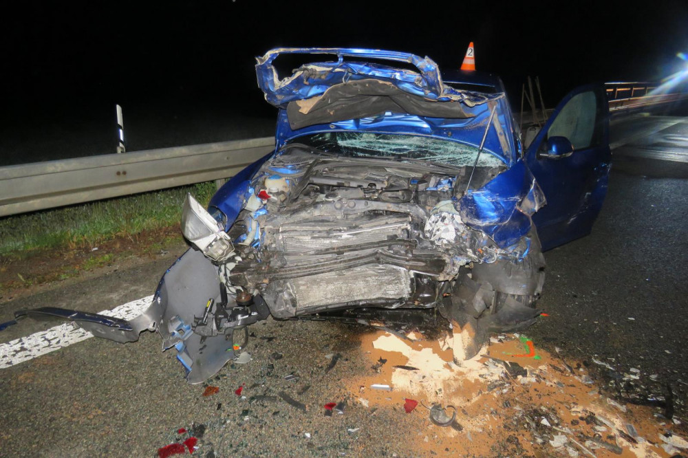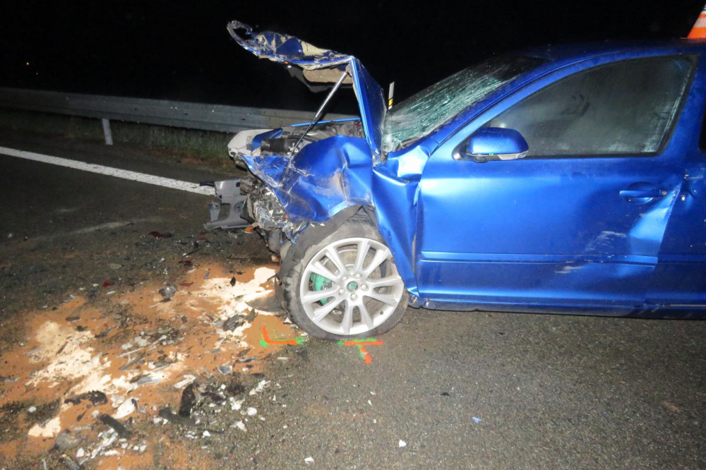 Řidič při předjíždění dostal smyk na mokré vozovce a narazil do protijedoucího auta. Skončil ve vážném stavu v nemocnici
