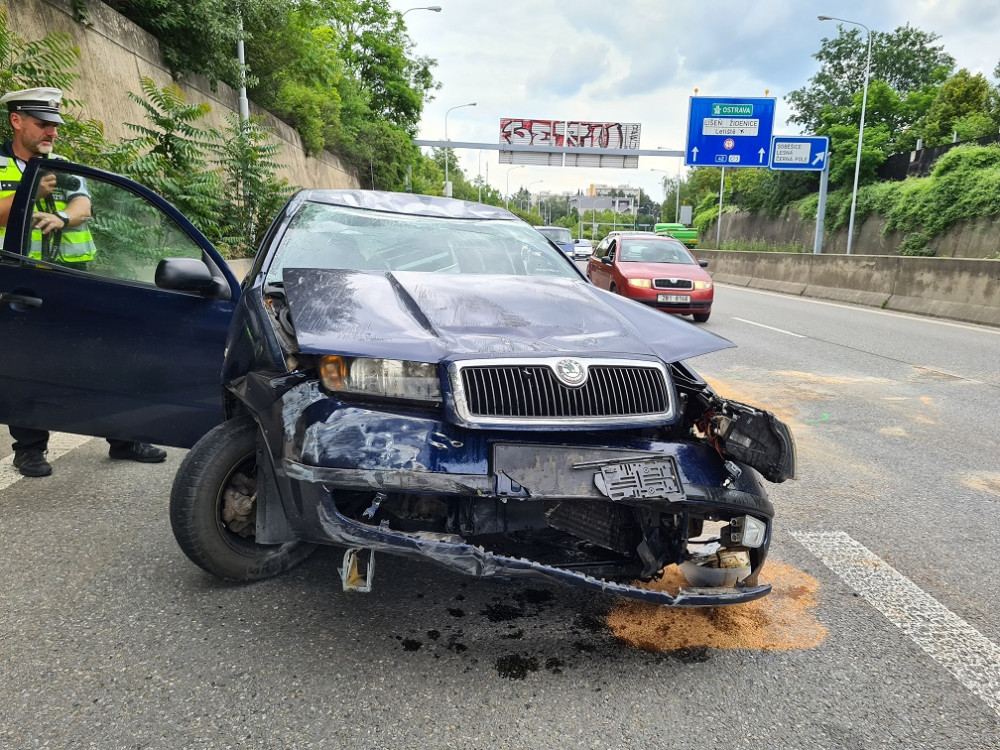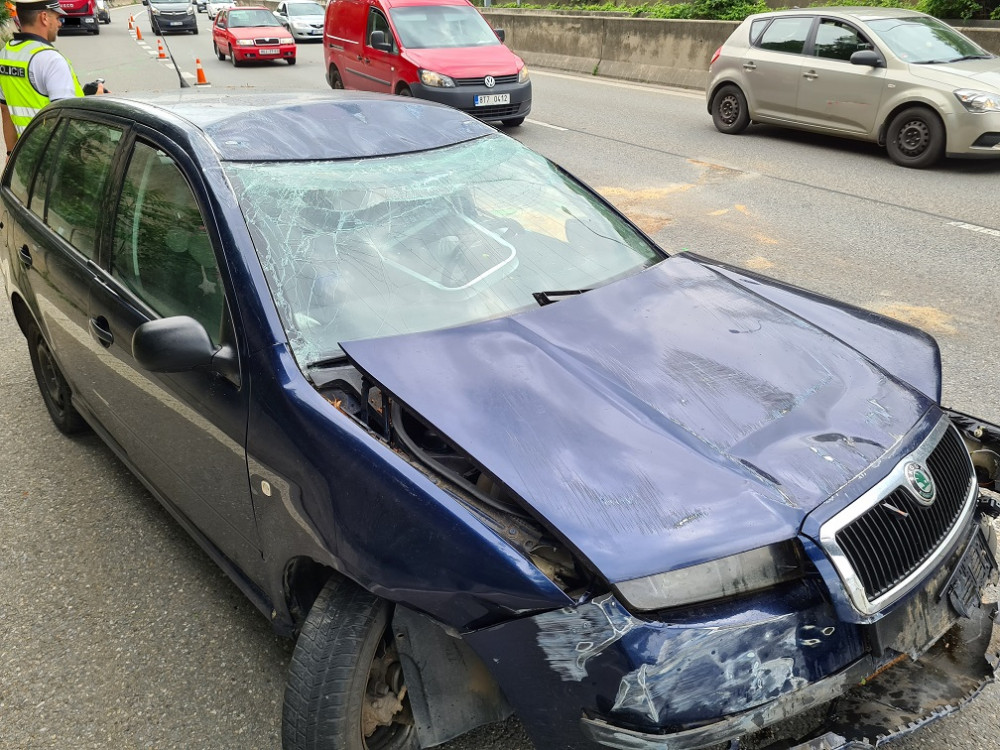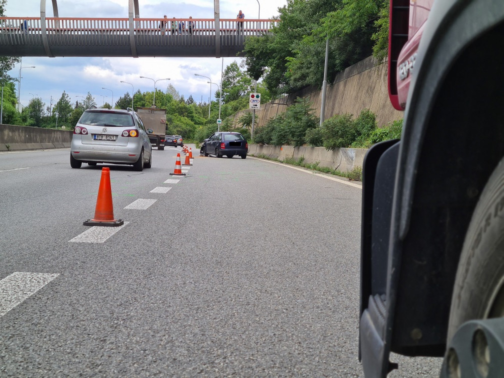 V Husovickém tunelu narazil náklaďák do osobního auta, zranili se tři lidé