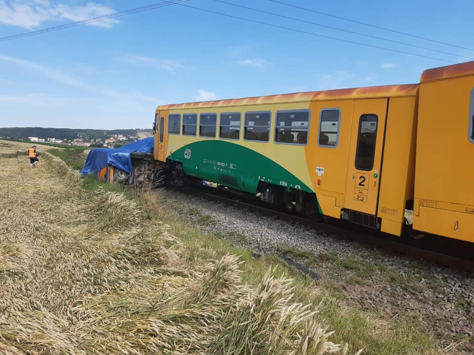 FOTO: Na Blanensku se na přejezdu srazil vlak s dodávkou. Řidič auta skončil v nemocnici