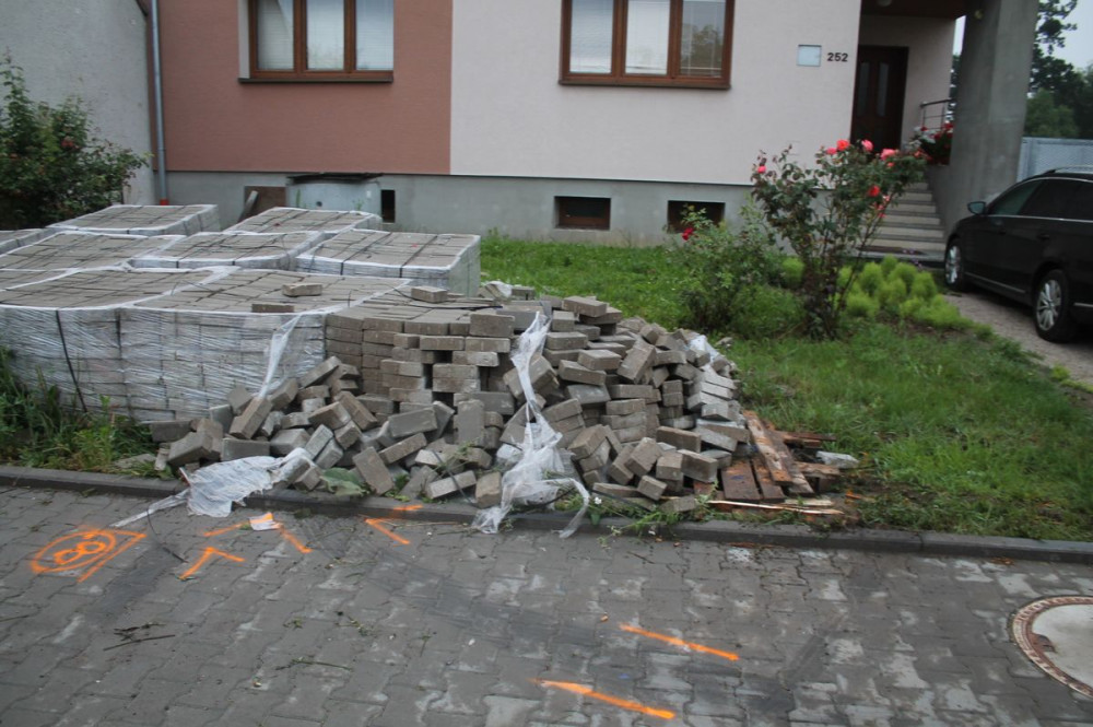 Opilý řidič nezvládl svou zběsilou jízdu, se skoro 2 promile naboural zaparkované auto i palety s dlažbou