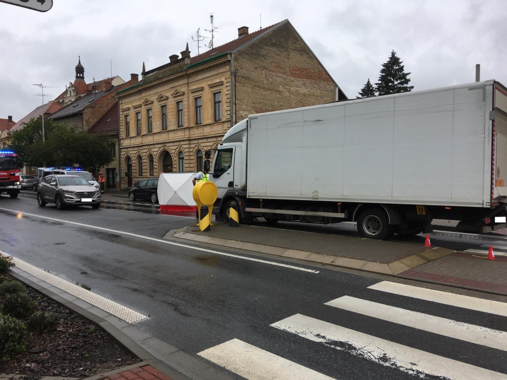Náklaďák srazil v Rousínově starší ženu na přechodu pro chodce. Zraněním na místě podlehla