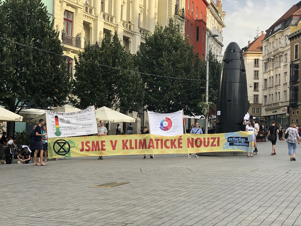 „Jsme v klimatické nouzi“, tak znělo heslo pondělní poklidné demonstrace na náměstí Svobody