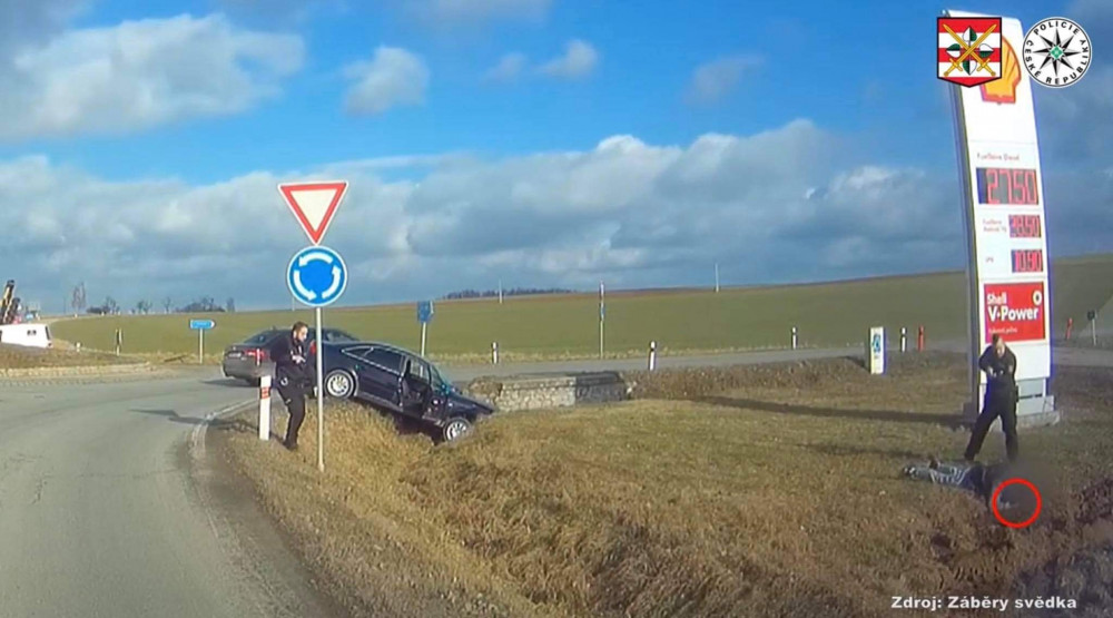 VIDEO: Šofér bez řidičáku, zato nejspíš posilněný drogami, uháněl před policisty. Zastavil ho až kruhový objezd