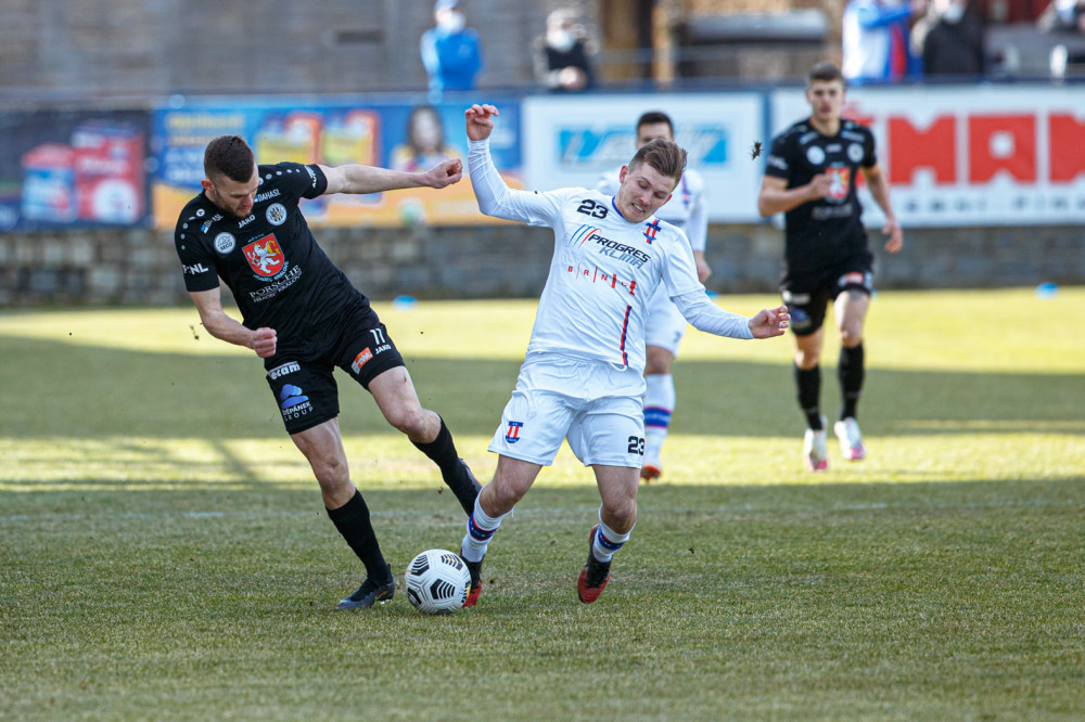 Líšeňský Milan Lutonský v souboji s Erikem Prekopem