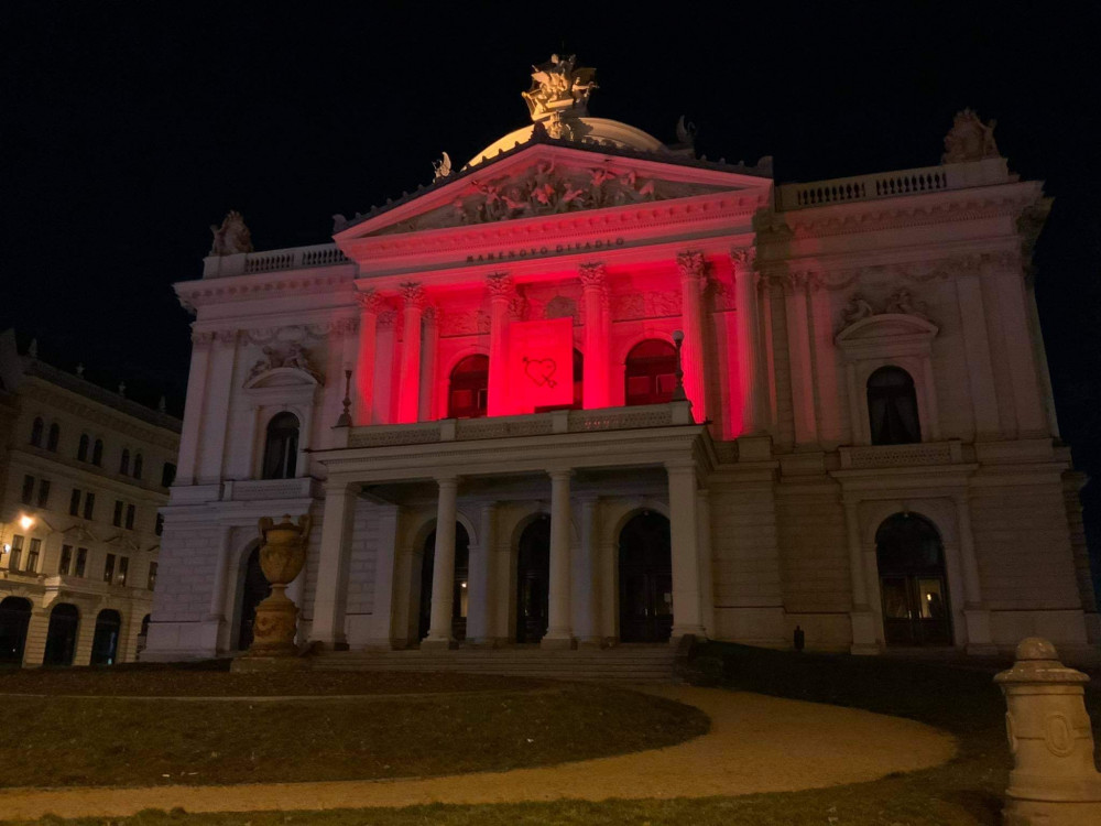 Mahenovo divadlo se zabarvilo do červena, město si připomíná Den učitelů