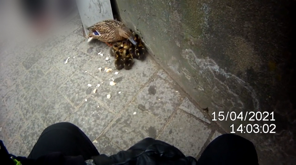 Kachna s jedenácti káčátky zabloudila do města, vysvobodili je strážníci